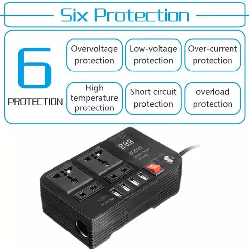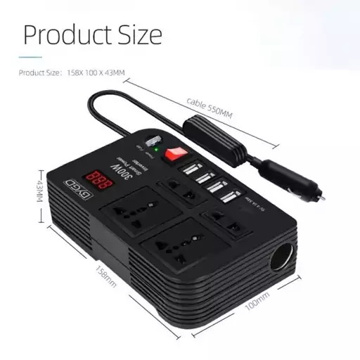 اینورتر مبدل برق خودرو فندکی 300 وات مدل E8982 مبدل برق خودرو 300 وات BYGD مبدلی با کیفیت و کاربردی است که با تبدیل برق 12 ولت خودرو به 220 ولت به شما این امکان را میدهد که پریز برق در خودرو داشته باشید. این اینورتر برق خودرو می تواند برق خودرو DC 12 ولت را به برق خانگی 220 ولت AC تبدیل کند. ولتاژ ورودی: 12 ولت DC (10.5-16 ولت)؛ ولتاژ خروجی: AC 220V; توان خروجی: 220V/300W; خروجی USB: 5V/4.1A پنکه خنککننده اتوماتیک بسیار بیصدا با کنترل دما به کاهش گرما و جلوگیری از اتصال کوتاه کمک میکند، سیستم فن خنککننده هوشمند اینورتر برق خودرو را هنگام کار بسیار بیصدا میکند. هنگامی که دستگاه گرم می شود یا توان خروجی بیش از 70 وات است، فن سریعتر کار می کند. این اینورتر برق خودرو DC 12 ولت به AC 220 ولت دارای 4 پریز برق AC 220 ولت و 4 پورت USB است که در لوازم خانگی و بسیاری از لوازم الکترونیکی دیگر مانند لپ تاپ، تلفن همراه، آمپلی فایر، فریزر و غیره کاربرد دارد. یک اینورتر برق خوب راحتی زیادی را در سفر شما ارائه می دهد، هرکسی که در حال حرکت است - در ماشین، کامیون، RV، یا قایق موتوری - می تواند از یک اینورتر برق استفاده کند. شارژ مناسب برای تلفن هوشمند، دوربین، iPad شما، نوت بوک، PSP و دستگاه های دیگر. فیوز 30 آمپر داخلی، طراحی شارژ ایمن محافظت در برابر گرمای بیش از حد، ولتاژ کم، اضافه ولتاژ، اتصال کوتاه، اضافه بار و جریان بیش از حد را فراهم می کند. همچنین شما میتوانید تا توان 300 وات از آن خروجی بگیرید. که این توان میتواند توان مورد نیاز یک لپتاپ، تلویزیون کوچک، دوربین عکاسی، لامپ کممصرف، شارژر موبایل و تبلت، مودم و … را تامین کند و از طرفی با توجه به جریان و توان کم مصرفی به سیمکشی برق داخلی خودرو آسیب نمیرساند. پس براحتی می توانید از آن برای تامین برق دستگاه های شبیه به بالا استفاده کنید. مشخصات اینورتر مبدل برق خودرو فندکی 300 وات مدل E8982: مدل: E8982 مارک: BYGD ماکزیمم توان: 300 وات ولتاژ ورودی: 12 ولت DC (خودرویی) ولتاژ خروجی: 220 ولت نوع خروجی: شبه سینوسی تعداد خروجی یو اس بی: 4 عدد USB (5ولت 4.1 آمپر) تعداد خروجی 220 ولت برق شهری: 4 عدد موارد مصرف: شارژ کردن موبایل، شارژ کردن لپ تاپ، روشنایی، دستگاه پز، دوربین عکاسی نوع خودرو: تمامی خودروها نوع اتصال: فندکی دارای کلید روشن و خاموش در روی دستگاه دارای فیوز دارای خروجی فندکی دارای نشانگر LED دارای کنترل کنندههای دما, ولتاژ و جریان دارای فن خنک کننده اتومات